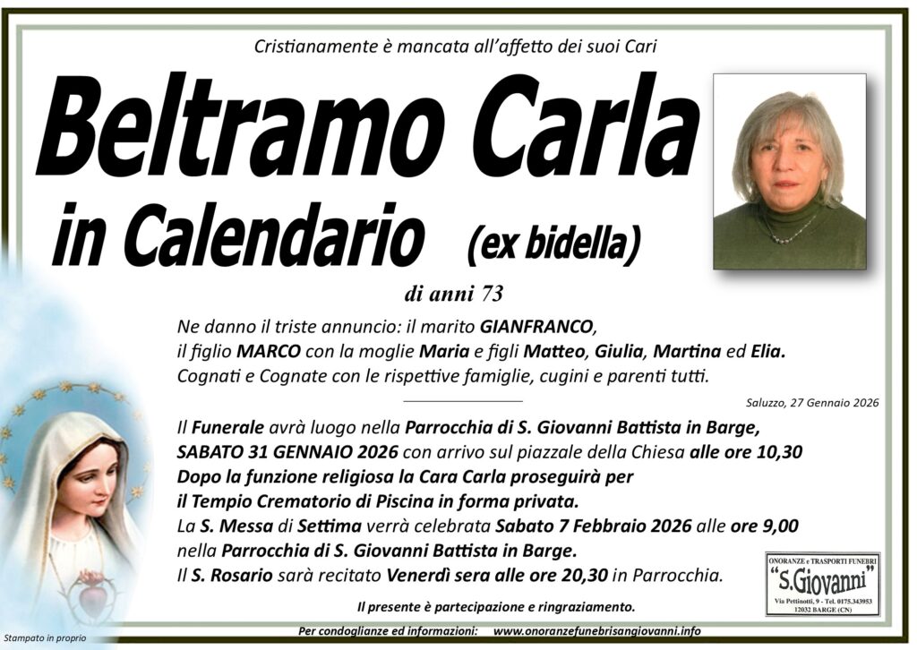 Beltramo Carla in Calendario di anni 73